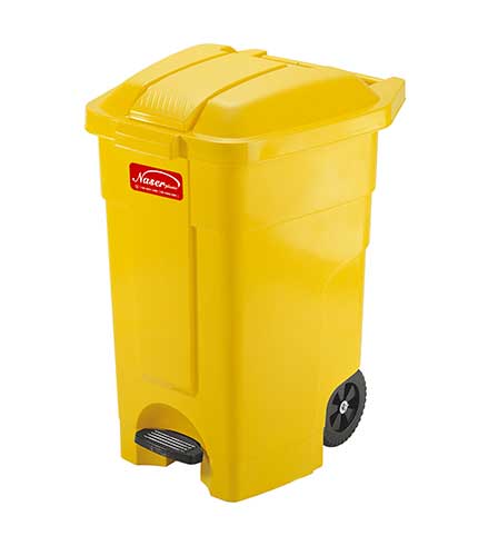 محصول سطل زباله پدالی و چرخدار مدل 5000 ناصر پلاستیک تولید شده از مواد اولیه با کیفیت قابل استفاده در محیط های گوناگون . سطل چرخدار و پدالی 5000 در رنگ بندی های سبز ، زرد ، نارنجی ، قهوه ای ، آبی و … قابل فروش به صورت تک و عمده می باشد .
